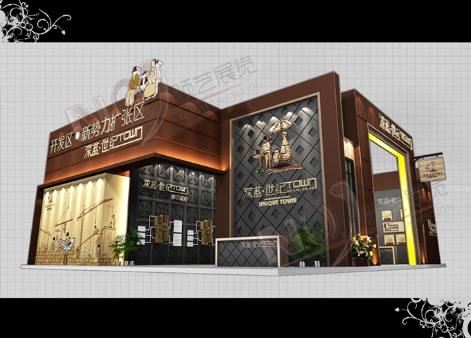 巧妙的運(yùn)用棕色、黑色作搭配,著重突出品牌和產(chǎn)品的展示,使整個展位時尚新穎又大氣。