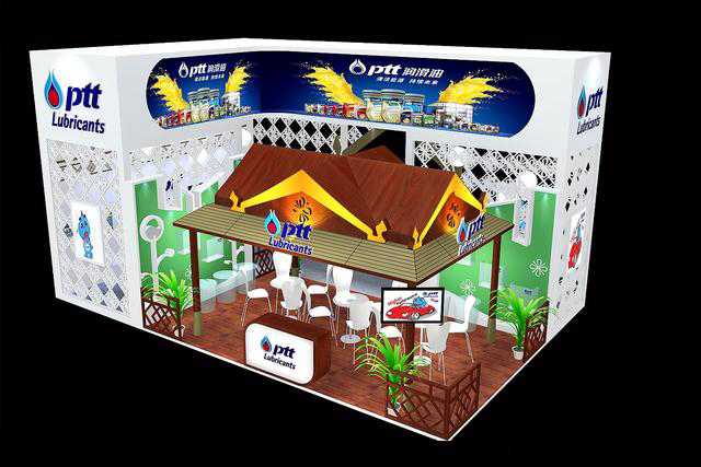 流線型的設計,簡潔大氣。整體造型一氣呵成,顯得流暢自如。 展臺上聲光電的組合運用,突出宣傳主題。