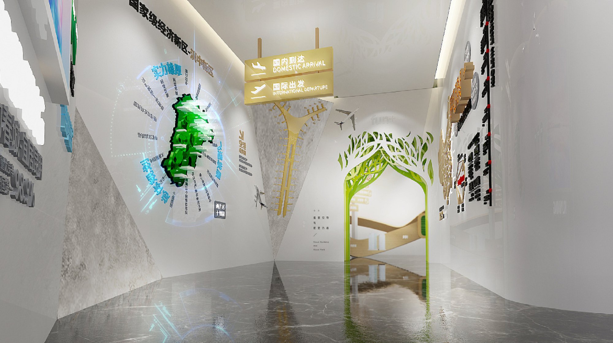 契合云谷小鎮(zhèn)的品牌形象和產(chǎn)品特性,采用開放式結(jié)構(gòu)進(jìn)行合理的分區(qū),再搭配燈具燈光的效果,襯托出展廳大氣、豪華的氛圍,突出一種簡(jiǎn)約、時(shí)尚的品味。